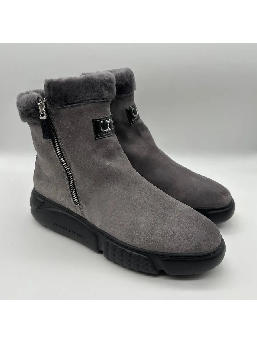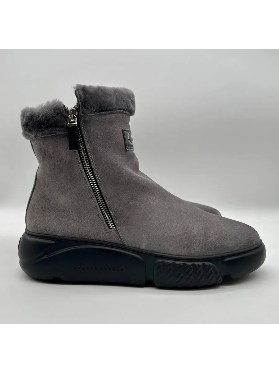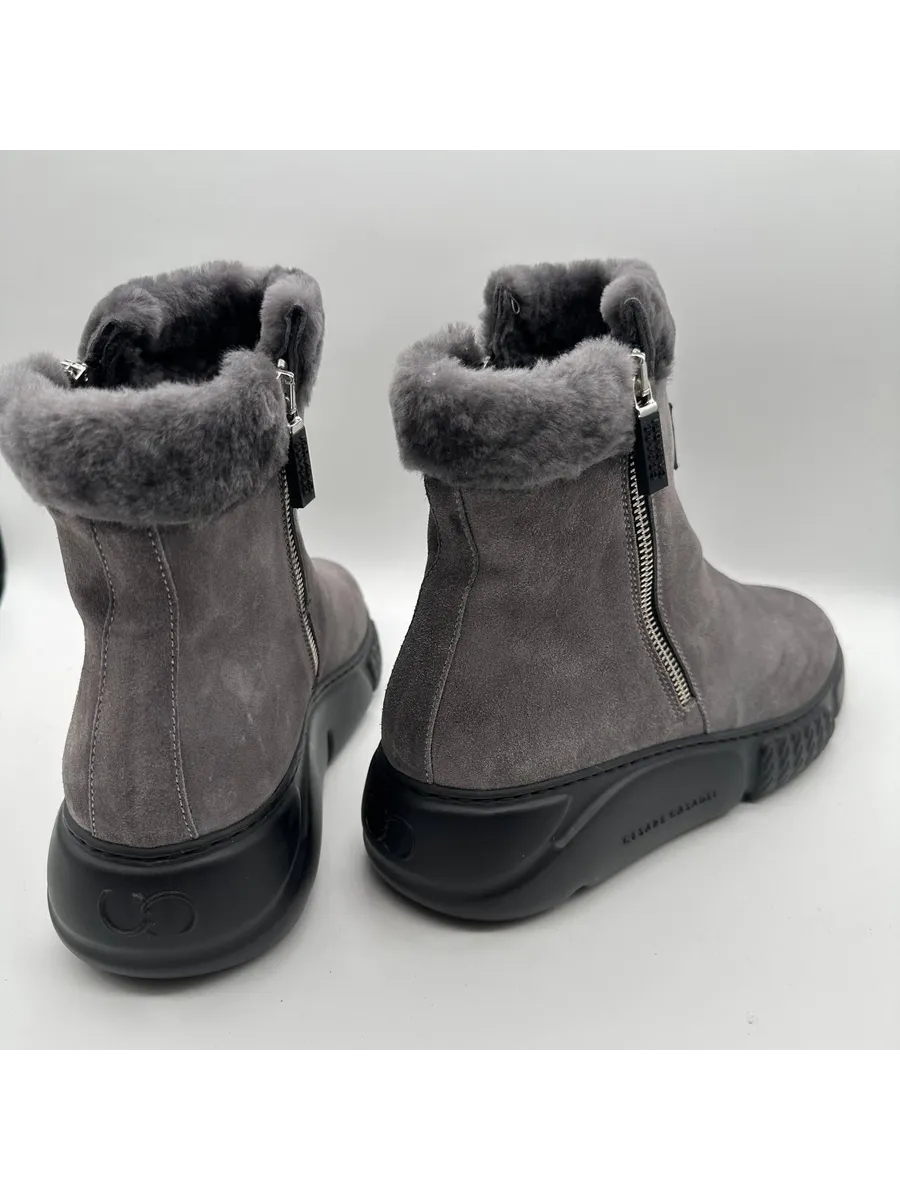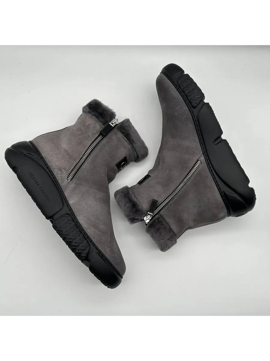 - Элегантный выбор для зимнего гардероба: мягкая замша верха сочетается с теплым меховым внутренним наполнением